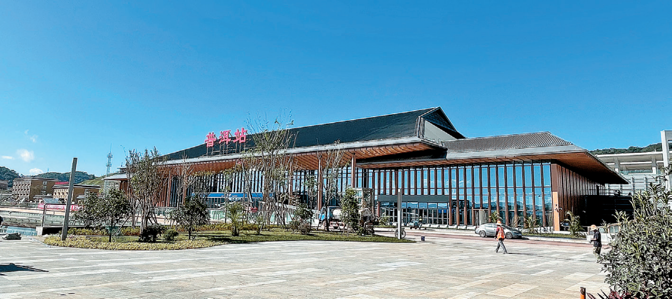 6.普洱站位于云南省普洱市思茅區(qū)南屏鎮(zhèn),距普洱汽車客運(yùn)站約2.3公里,距普洱思茅機(jī)場(chǎng)約3.4公里。普洱站站房建筑面積為11998平方米,最高聚集人數(shù)為1500人,建筑層數(shù)為地上兩層,局部地下一層。旅客乘降的站臺(tái)3座、到發(fā)線5條。采用驗(yàn)檢合一的進(jìn)站檢票模式。設(shè)商務(wù)候車室、行政貴賓室、母嬰候車室及重點(diǎn)旅客候車區(qū)。