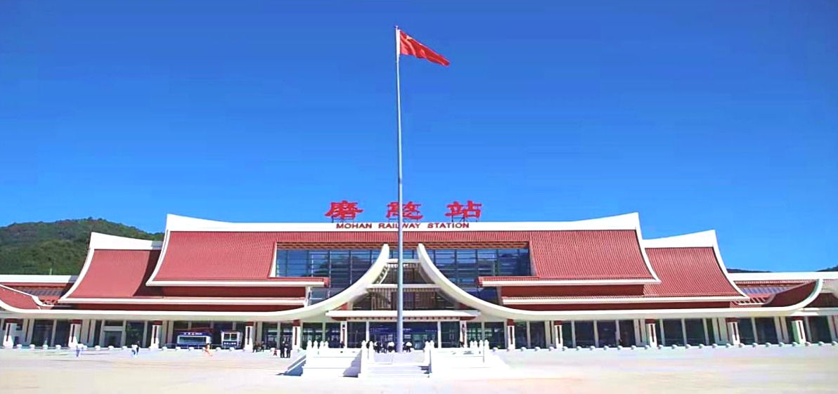 10.勐臘站位于云南省西雙版納傣族自治州勐臘縣勐臘鎮(zhèn)靠城市西側(cè),距離縣城中心約2公里。勐臘站為線側(cè)下式站房,站房建筑面積2979平方米,地上1層,最高聚集人數(shù)600人,站房。旅客乘降的站臺(tái)1座、到發(fā)線1條。采用驗(yàn)檢合一的進(jìn)站檢票模式。設(shè)母嬰候車室及重點(diǎn)旅客候車區(qū)。