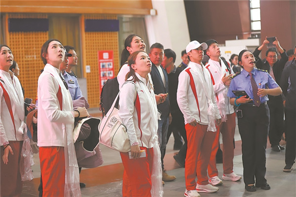 奧運(yùn)冠軍參觀青藏鐵路精神展廳。周悅翔 攝